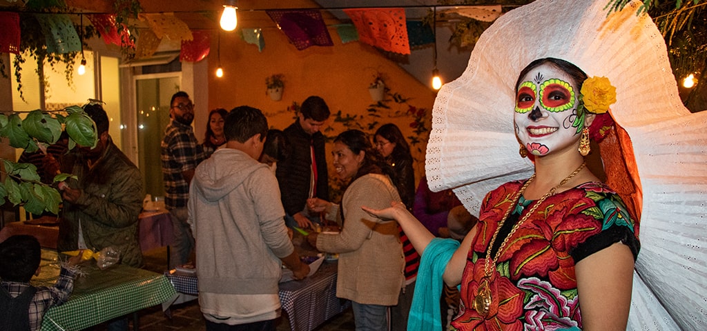 “Tonalli, Celebración de los muertos” es el evento mediante el cual, Tragaluz y Rizoma invitan a los vecinos y familias de nuestra comunidad a reunirse y celebrar las tradiciones de nuestro país. En esta edición los participantes fueron parte de tres talleres artísticos, en los que realizaron flores de cempasúchil, hicieron máscaras de catrinas y conocieron el proceso artesanal para la elaboración de calaveritas de azúcar. Más tarde, Lulú Bulos y Gaby Prisco, alumnas de la Universidad de las Américas Puebla, nos deleitaron con melodías del repertorio popular mexicano como “La llorona”, “La Bruja” y “Recuérdame”, entre otras.
